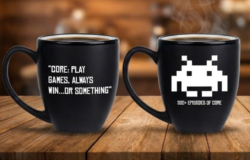 Wanted to let you guys know about the 500+ commemorative mug for CORE fans. 500 episodes is no small feat! Anyway, reserve yours while we are taking orders for em! (Sorry Canadian and other international shipping rates are so FREAKING bad right now. We understand if that wont work for some of our overseas friends.)
