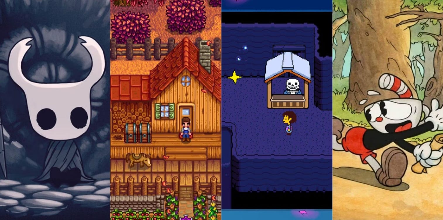No Stardew Valley. No Slay the Spire. No Balatro, Vampire Survivors, Deep Rock Galactic, Hollow Knight, Dead Cells, No Man’s Sky, Among Us, Hades, Undertale, Celeste…